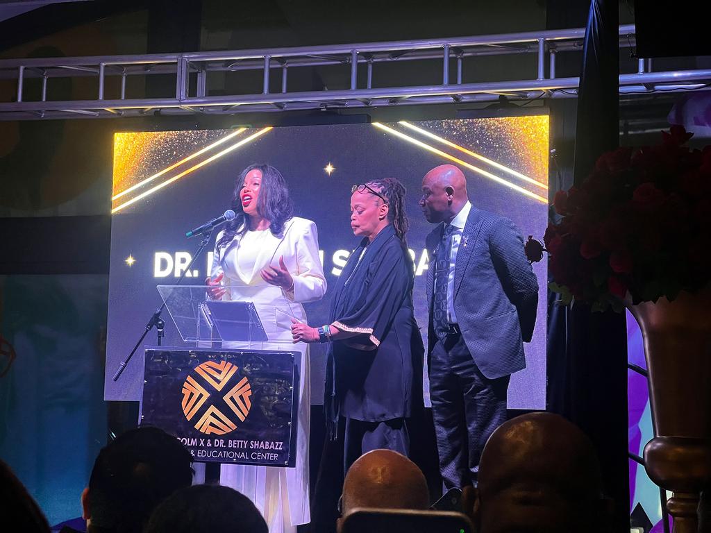 The event begins with an award and ceremony for Ayanna Gregory, Dick Gregory’s daughter. Later, I don’t recall what was going on on stage in the moment, but I turn to my left and a tall white dress is striding between the chairs, moving up to the stage. When this person gets on stage and turns to face the audience, I can see Malcolm in her face. Dr. Ilyasah Shabazz has a similar forehead and her dad’s sugar smile.